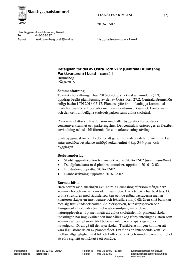 Visionsbild 2 Centrala Brunnshög Parkkvarteren